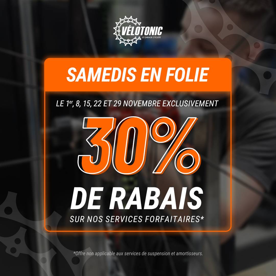 On November 1, 8, 15, 22, and 29 only, enjoy a 30% discount on all our services*! It's the perfect time to give your bike a tune-up and make it look like new! *Offer does not apply to our suspension and shock services.